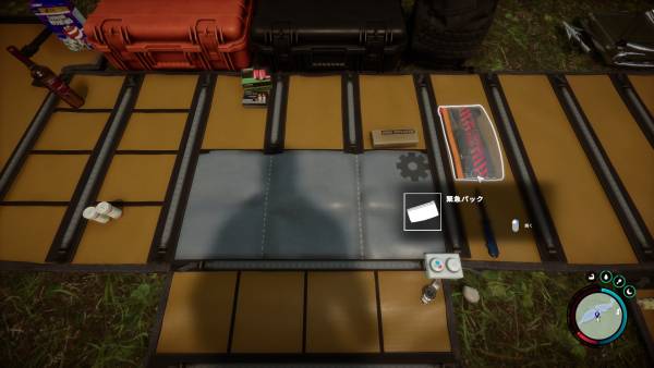 Iキーでインベントリを開き、緊急パックを開くとGPSやナイフが出てきます。